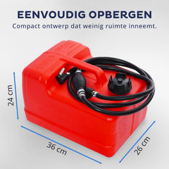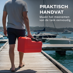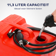 The deluxe gasoline tank is made of high-quality plastic, which prevents the material from becoming soft and dissolved by the gasoline. This prevents possible damage to the outboard motor. With a capacity of 11.3 liters, this tank is ideal for smaller boats. When the gasoline runs out, the tank can be easily carried by the handle.