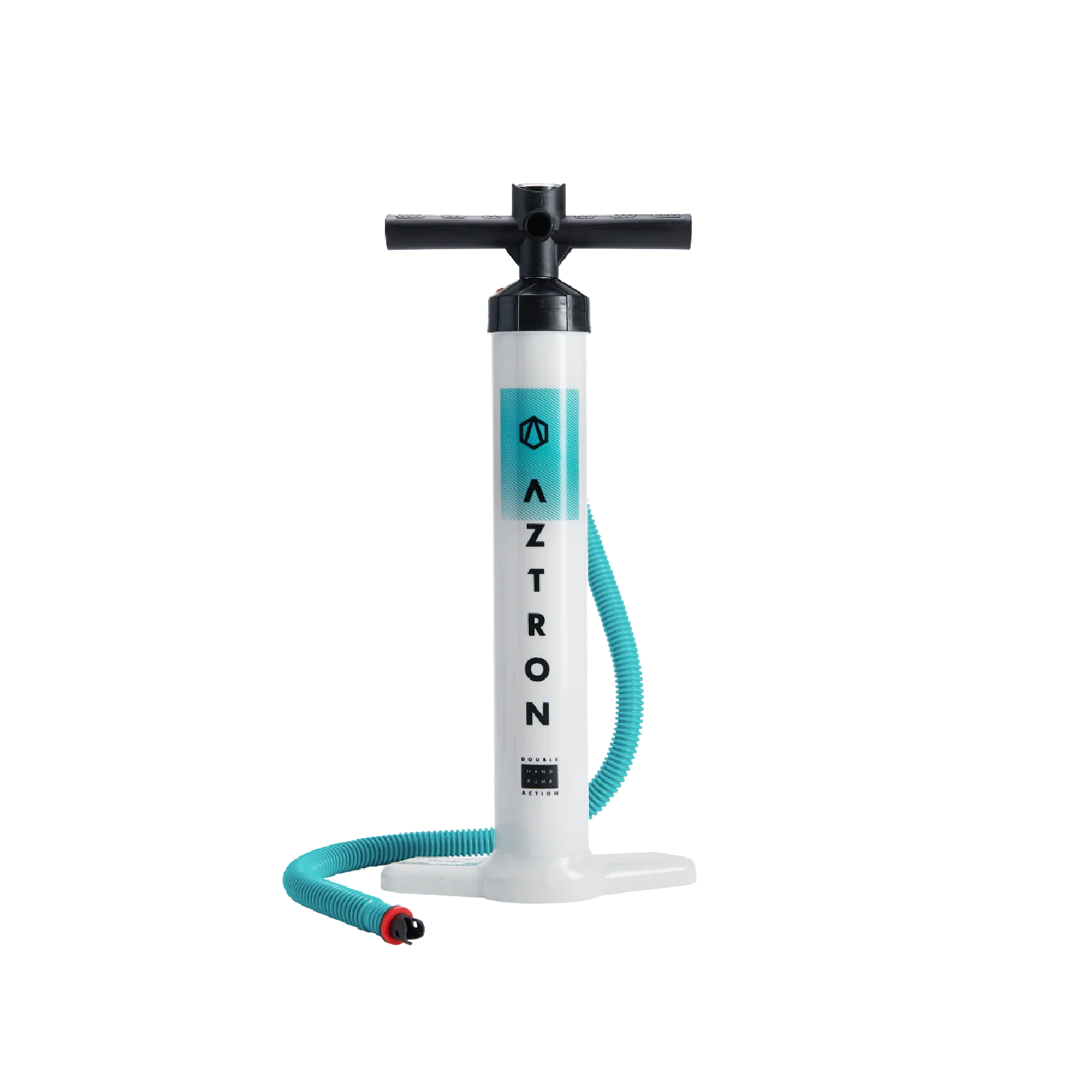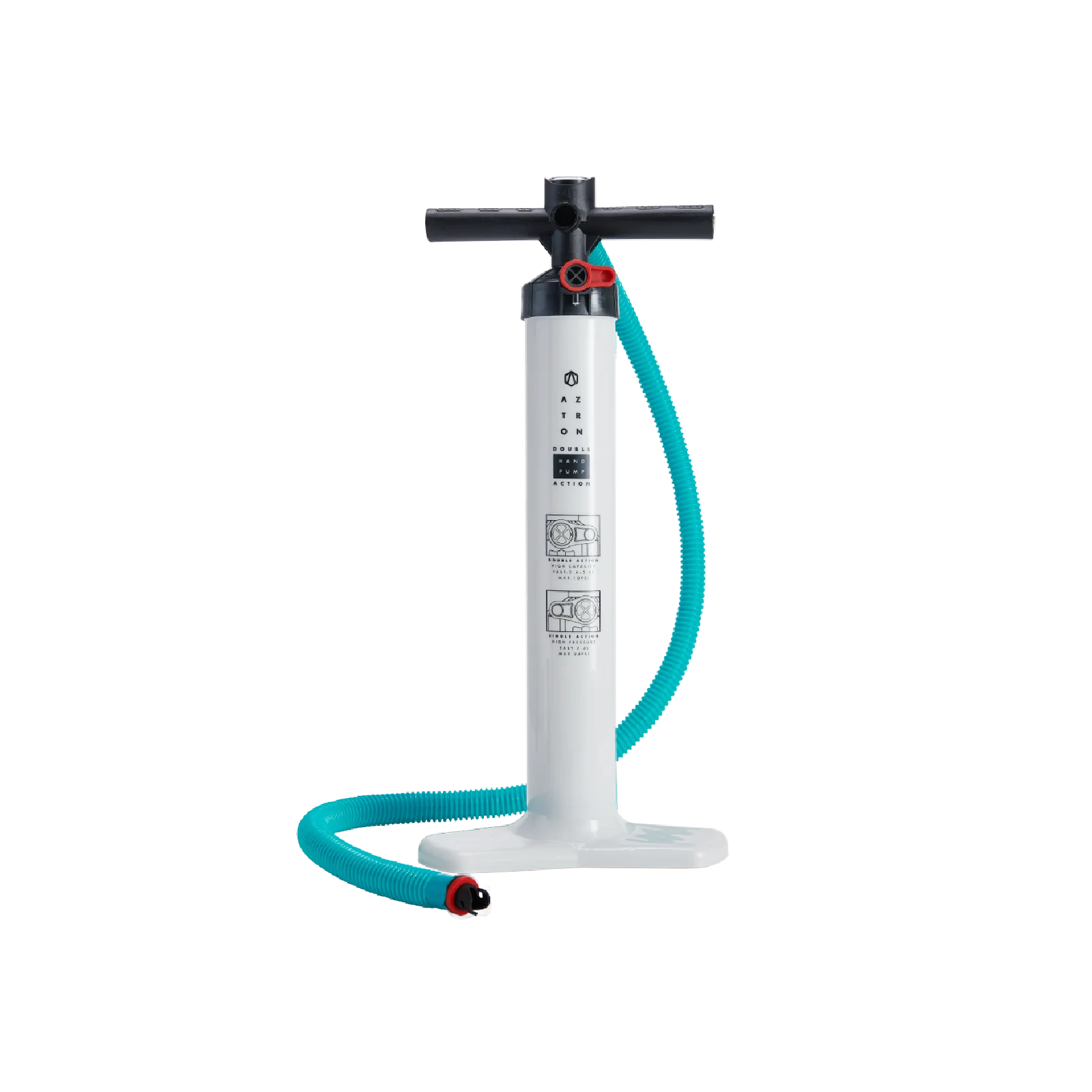 Aztron SUP Handpomp Double Action is een krachtige en praktische handpomp voor watersporters die hun opblaasbare SUP snel en efficiënt willen oppompen. Een goede pomp maakt een groot verschil in gebruiksgemak, zeker wanneer je regelmatig het water op gaat en zonder gedoe wilt starten. Deze double action pomp werkt met een continue pompbeweging bij zowel het omhoog als omlaag duwen, waardoor je board sneller op druk komt dan met een standaard handpomp. Dat bespaart tijd en energie, vooral in de eerste fase van het oppompen. Wanneer de druk hoger wordt, schakel je eenvoudig over naar single action, zodat de laatste slagen lichter en comfortabeler aanvoelen. Daardoor is deze pomp een slimme keuze voor suppers die efficiënt willen werken en hun materiaal snel klaar willen hebben voor gebruik. De stevige constructie met aluminium shaft draagt daarbij bij aan een betrouwbare en duurzame werking.