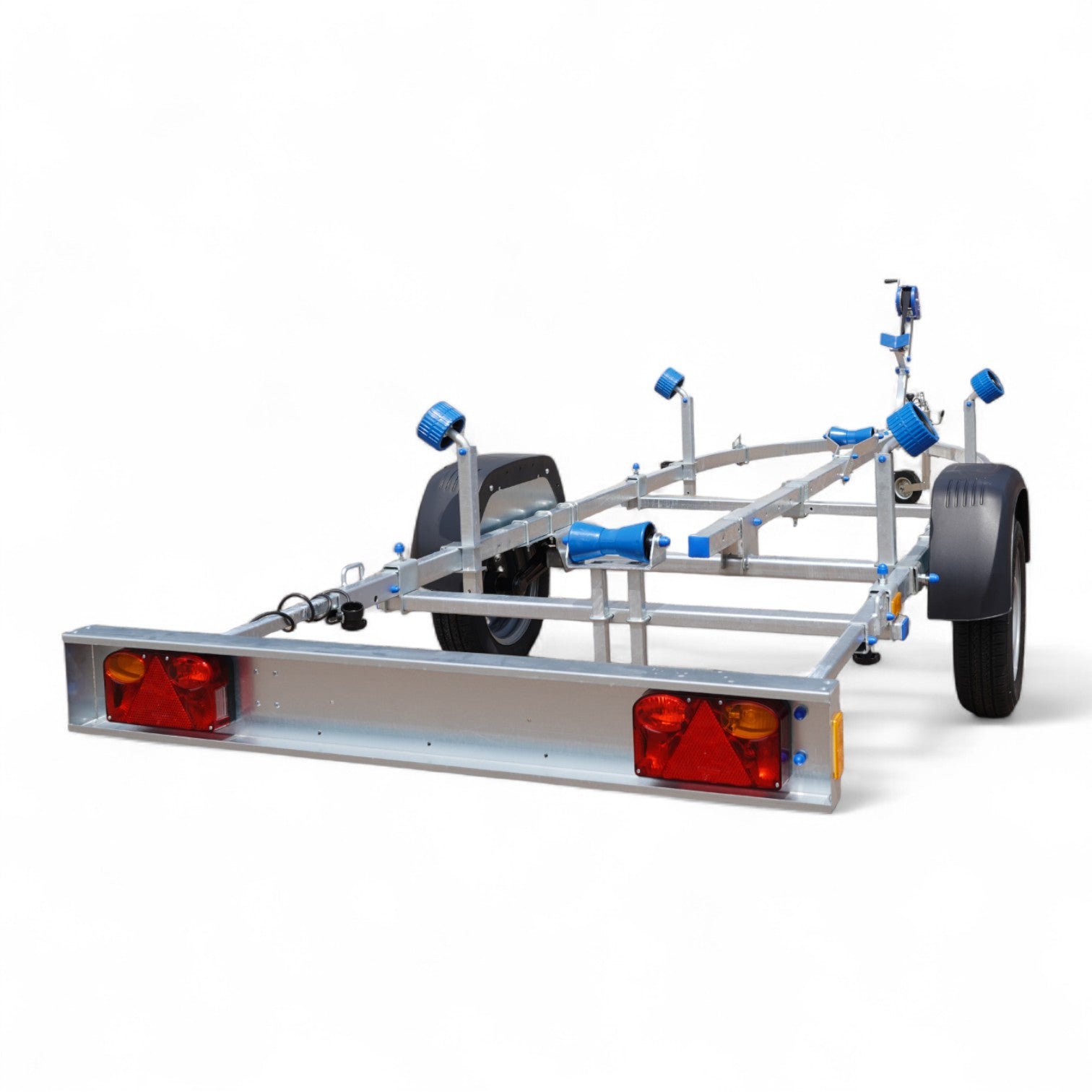 Dankzij de slimme constructie met verstelbare elementen is de trailer eenvoudig aan te passen aan vrijwel elk type boot. Praktische bevestigingspunten maken het snel en veilig vastzetten met spanbanden mogelijk. De afneembare lichtbalk is voorzien van een handig snelwisselsysteem, ideaal bij het te water laten van de boot.