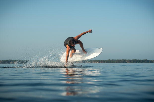 Onder het board zorgt de Jet-C unit voor een gelijkmatige en veilige krachtopbouw, zonder agressieve “bite” van een open propeller. Standaard wordt deze configuratie geleverd met de Cruiser Jet 1500 C front wing en Cruiser Jet 300 C stabiliser: een high-end carbon wing-combinatie die vroeg lift geeft, veel stabiliteit biedt en toch soepel met je mee carve’t. Daarmee is de set toegankelijk genoeg voor ambitieuze instappers, maar biedt hij ook genoeg performance voor ervaren riders die lange, vloeiende bochten willen trekken of efficiënt willen cruisen. De diepe zwarte carbon afwerking met bijpassende Jet-C details maakt het geheel niet alleen technisch indrukwekkend, maar ook visueel een statement voor wie topniveau in afwerking en vaargedrag zoekt.