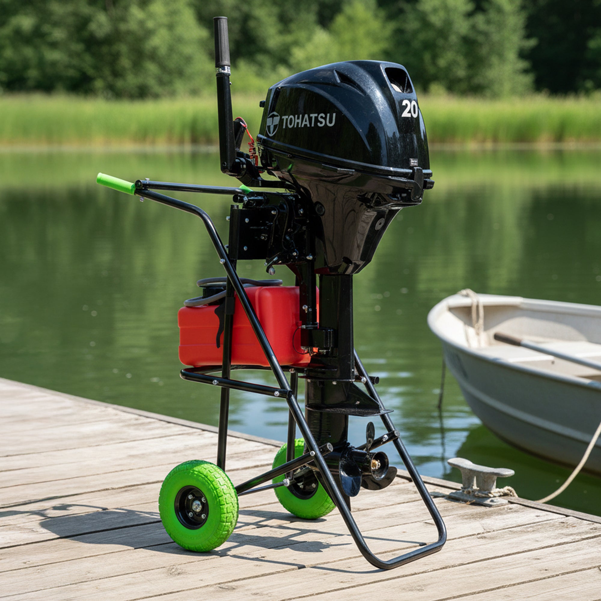 Met een maximale draagkracht van 59 kg is deze trolley geschikt voor buitenboordmotoren tot 20 pk (4-takt, zoals die van Tohatsu). Of je nu een kortstaart of langstaart motor hebt, deze trolley biedt de perfecte oplossing. Daarnaast is er een handige houder voor een externe benzinetank, die eenvoudig met een riem kan worden vastgezet, zodat de benzineslang tijdens het vervoeren niet hoeft te worden losgekoppeld.