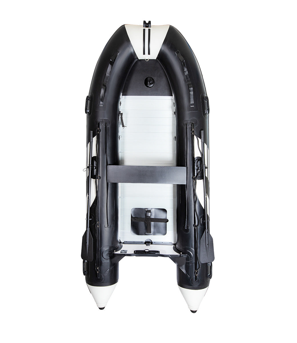 De HIBO rubberboot heeft een stevige aluminium vloer die tegen een stootje kan. De vloer is makkelijk te plaatsen en uit elkaar te halen, zodat de rubberboot makkelijk opgeborgen kan worden. Door de meegeleverde zijprofielen blijft de aluminium vloer stevig in de rubberboot liggen. Dit zorgt voor verbeterde vaareigenschappen en voorkomt het opspringen van de vloerdelen bij golfslag.