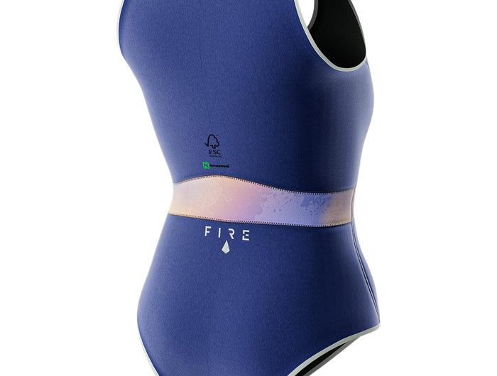 Prolimit Shorty Dames Fire Sleeveless Front V-Zip 2/2MM Blauw/Peach